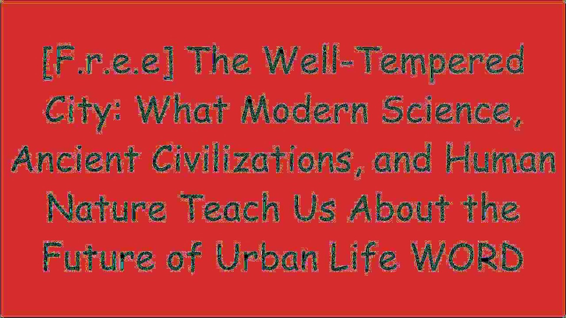 Listen Free To Well Tempered City What Modern Science Ancient